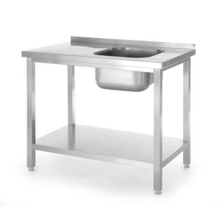 Plonge 1 Bac à Droite Kitchen Line avec Étagère - P 600 x L 800 mm, en acier inoxydable pour une durabilité optimale. Avec une construction vissée pour un montage facile, ce produit offre une solution pratique et efficace pour le lavage et le rangement dans les cuisines professionnelles.