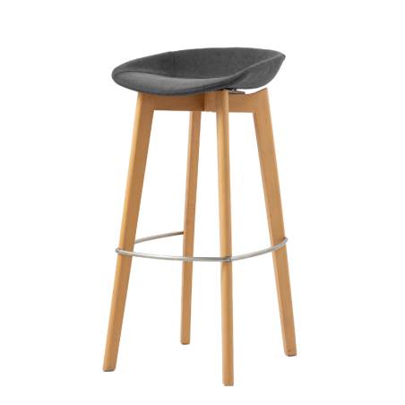 Tabouret de Bar Tissu Sans Dossier - Piètement Bois Keeve - Gris Foncé