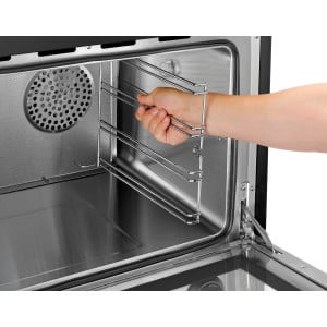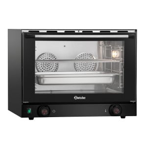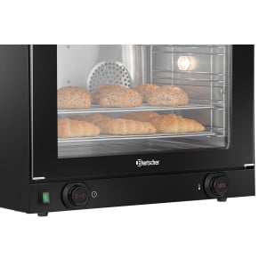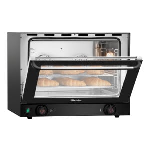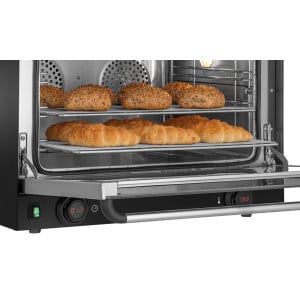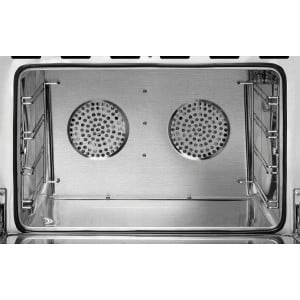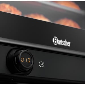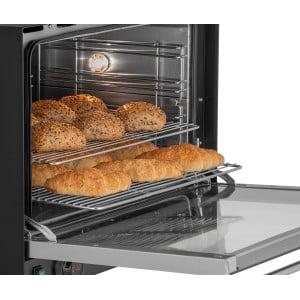 Grâce à une commande par manette, le four à convection offre un contrôle intuitif de la température, ajustable de 50 °C à 300 °C, permettant aux chefs de maîtriser parfaitement la cuisson pour chaque plat. La simplicité de l'interface garantit une utilisation sans complication, crucial dans les heures de haute pression.