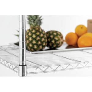 Avec une hauteur de 1845 mm, une longueur de 1210 mm et une profondeur de 610 mm, cette étagère de stockage ne prend pas beaucoup de place, tout en offrant beaucoup de place pour vos articles. Sa conception grillagée permet une circulation d'air optimale, ce qui est essentiel pour le stockage des aliments.
