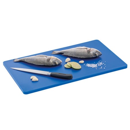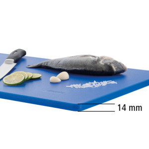 La Planche à Découper Easy - GN 1/1 - Bleu - Epaisseur 14 mm est conçue pour répondre aux besoins des cuisines professionnelles. Elle est particulièrement adaptée à la découpe du poisson, grâce à sa couleur bleue qui répond aux normes HACCP en matière d'hygiène et de sécurité alimentaire.