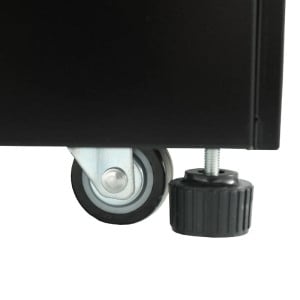 La Vitrine Réfrigérée de Comptoir 338 L allie fonctionnalité et esthétique, offrant une présentation soignée des produits grâce à son design élégant en noir et ses étagères en verre éclairées par LED. Avec un volume de 338 litres, une température réglable de -1 à 5°C et un refroidissement ventilé, elle garantit une conservation optimale des aliments. Dotée de portes coulissantes vitrées et d'une façade facilement accessible pour le nettoyage, cette vitrine est également mobile grâce à ses roulettes intégrées, simplifiant ainsi le repositionnement et le service.