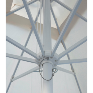 Ce parasol est caractérisé par sa structure en aluminium léger mais solide, avec un mât central de 48 mm de diamètre qui assure une grande stabilité. L'efficacité de son système de double poulie facilite grandement son ouverture et sa fermeture, rendant son utilisation pratique au quotidien. De plus, la pince intégrée permet de verrouiller le parasol en toute sécurité, un atout considérable lors des journées ventées.
