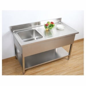 Plonge 1 Bac avec Dosseret et Etagère - L 1000 x P 700 mm