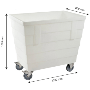 La mobilité est également facilitée par quatre roues robustes de 160 mm de diamètre, dont deux fixes et deux pivotantes avec freins. Ces roues, associées à une chape en inox, sont parfaitement adaptées aux environnements humides, évitant toute altération des roulements en présence d'eau. De plus, ce bac est empilable et compatible avec les dimensions standard de palettes, ce qui optimise l'espace de stockage.