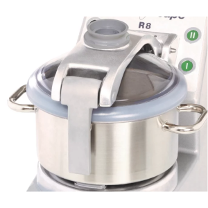 Ce Cutter de cuisine Robot Coupe R 8 possède une capacité de hachage de 3 kg et peut émulsionner jusqu'à 5 kg de préparation. Côté pétrissage, il vous autorisera le pétrissage de pâte levée hydratée à 60% jusqu'à 4 kg. Enfin sa puissance autorisera le broyage de vos préparations jusqu'à 2 kg.