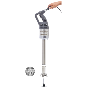 Ce mixeur plongeant possède un pied d'une longueur de 450 mm tout en Inox pour une hygiène et une longévité parfaite. Sa cloche est également en Inox et démontable.