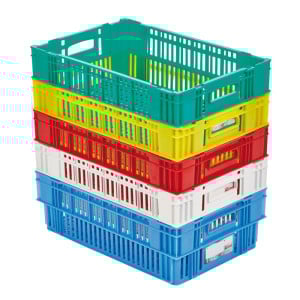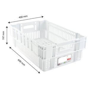 Aération du contenu. Empilable et emboîtable par rotation d'un demi-tour.