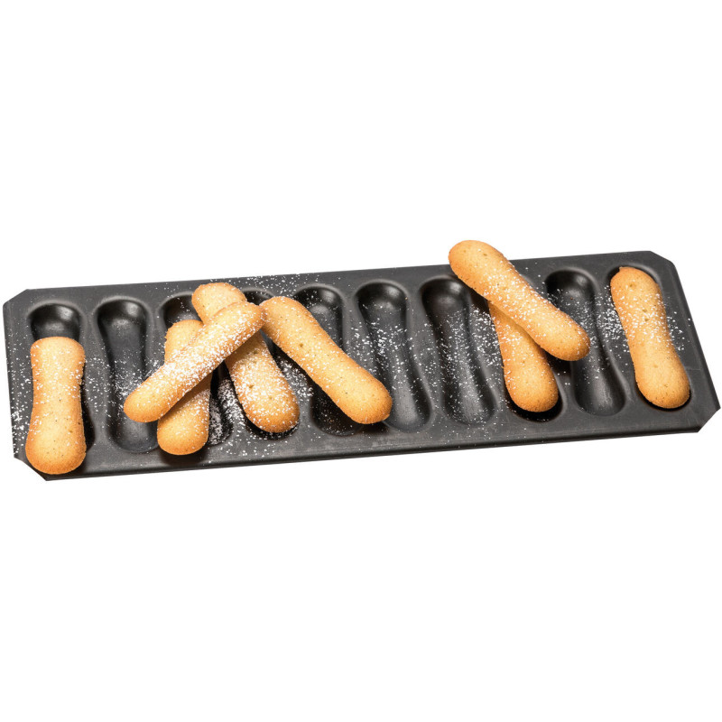 Prix réduit Moule à Langues de Chat - 10 Empreintes - L 95 mm Matfer Ref. MR310755 -10% Prix Prix de base 36,87 € HT 33 €04 HT 39 €65 TTC Ajouter au panier