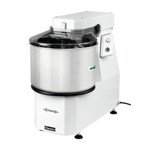 Ce pétrin à spirale avec "tête inclinable" peut contenir une quantité importante de pâte de 38 kg soit 42 litres. Il convient pour les pâtes très denses comme la pâte à pain ou à pizza.