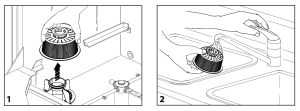 Enlevez le bouchon de trop plein vidange et appuyez sur le bouton de vidange jusqu’à ce que la cuve soit entièrement vide. Quand elle est vide, retirez le filtre autour du trop plein et nettoyez-le sous l’eau.